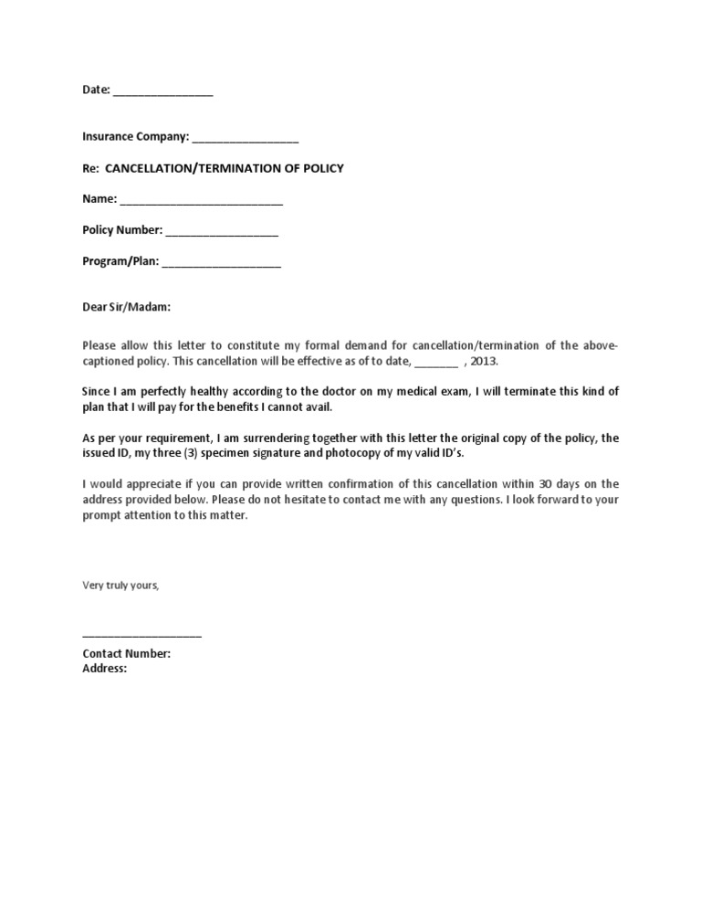 Free 5 Insurance Termination Letters In Pdf Ms Word